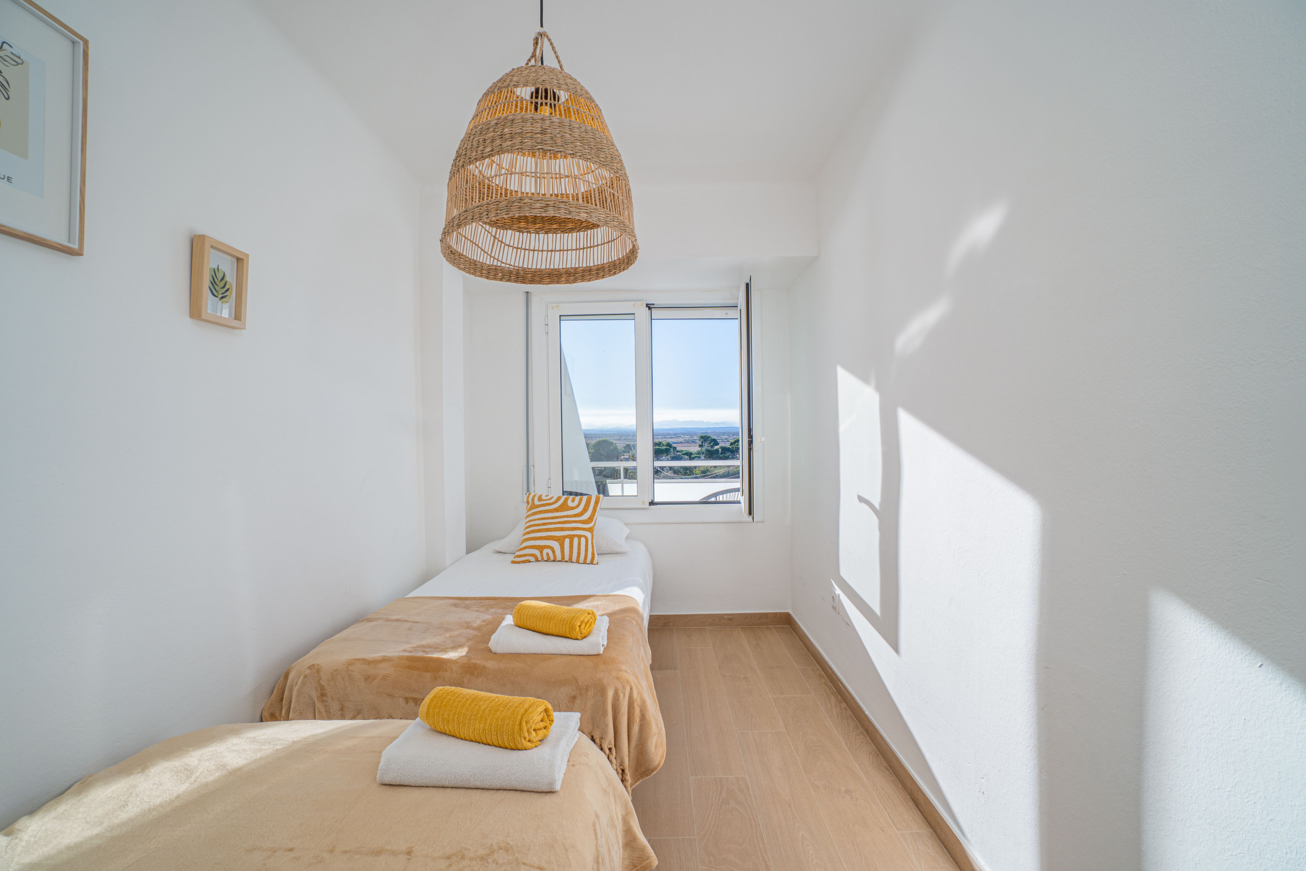 The spacious 11 m² terrace is the ideal place to relax while contemplating the impressive views of the sea and the Muga River, or to enjoy the most magical sunsets with a glass of wine in hand.